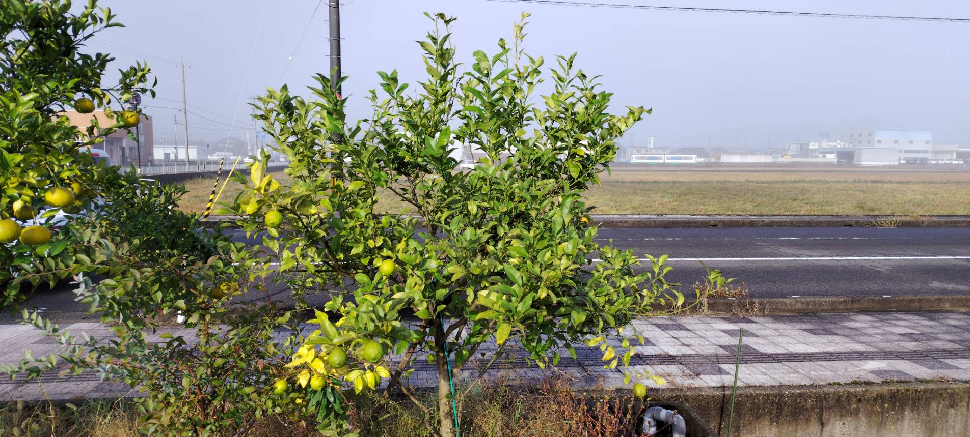 11月中旬の 弊社敷地内にある夏みかんと檸檬の木の成長記録です。