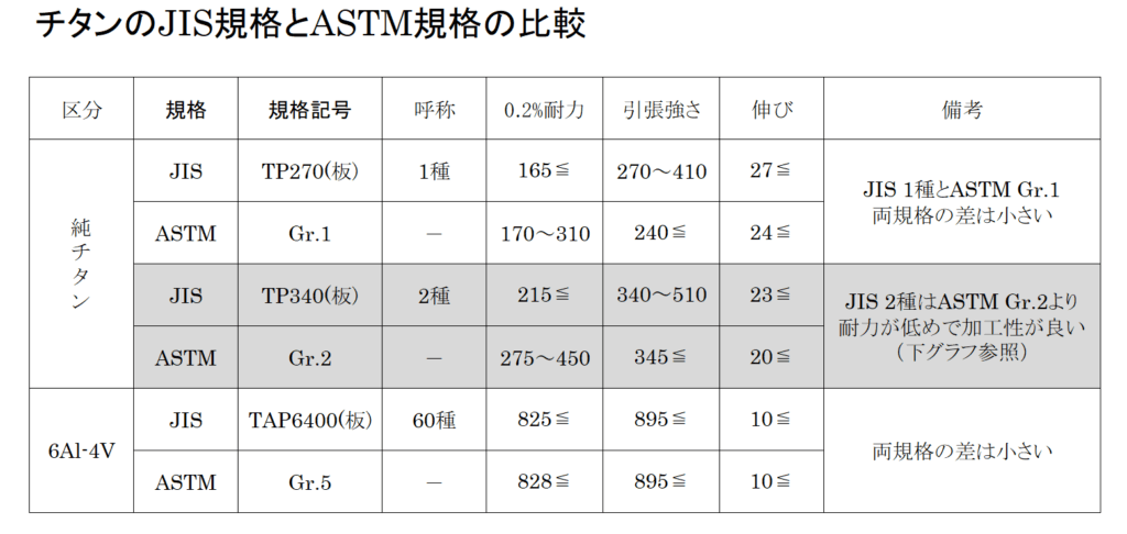 純チタン1種と6-4合金は、JIS/ASTM間の材質の差はほとんどないと理解して良いでしょう。(但し、試験方法など異なる点はあります)