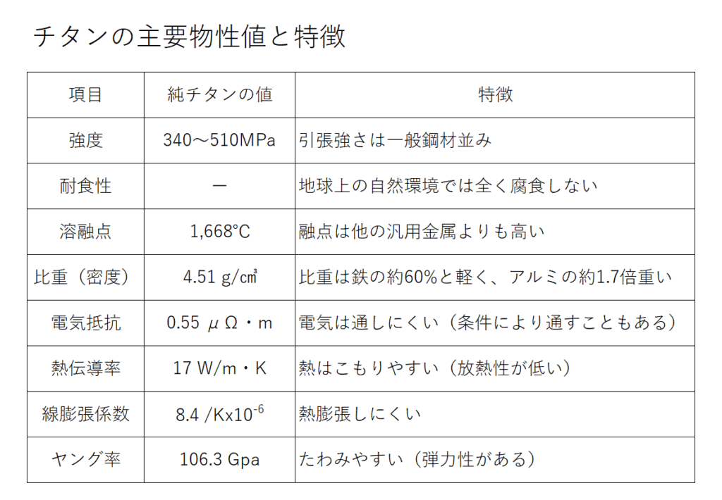 純チタン(及び耐食チタン合金)は99%以上の組成がチタンです