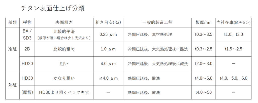 チタン板材は製造工程の違いにより、表面性状が少し異なります。